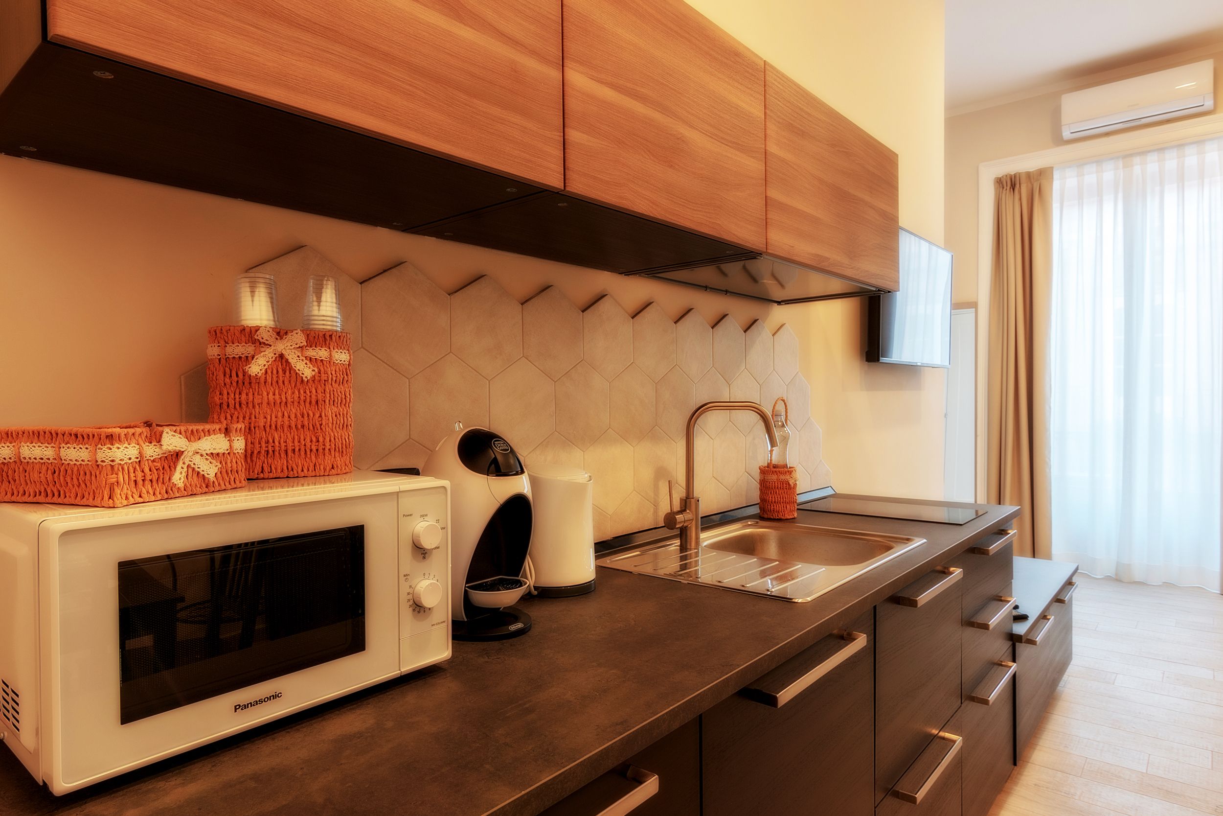 La luminosità degli ambienti, grazie ai due balconi vista città, l'eleganza degli arredi e la colazione riservata in camera, rendono questo appartamento ideale per ospitare famiglie ovvero, professionisti che gradiscono spazi ampi e comodi, con ingresso riservato.