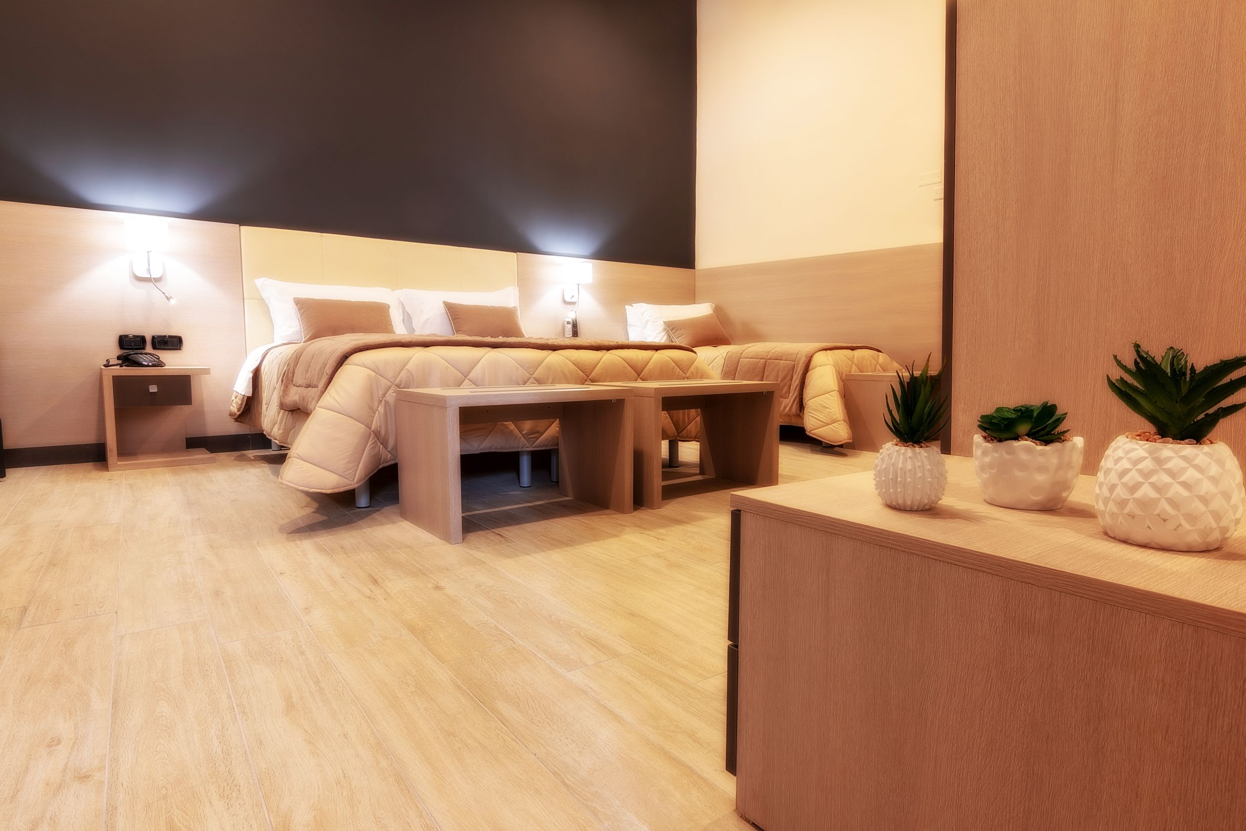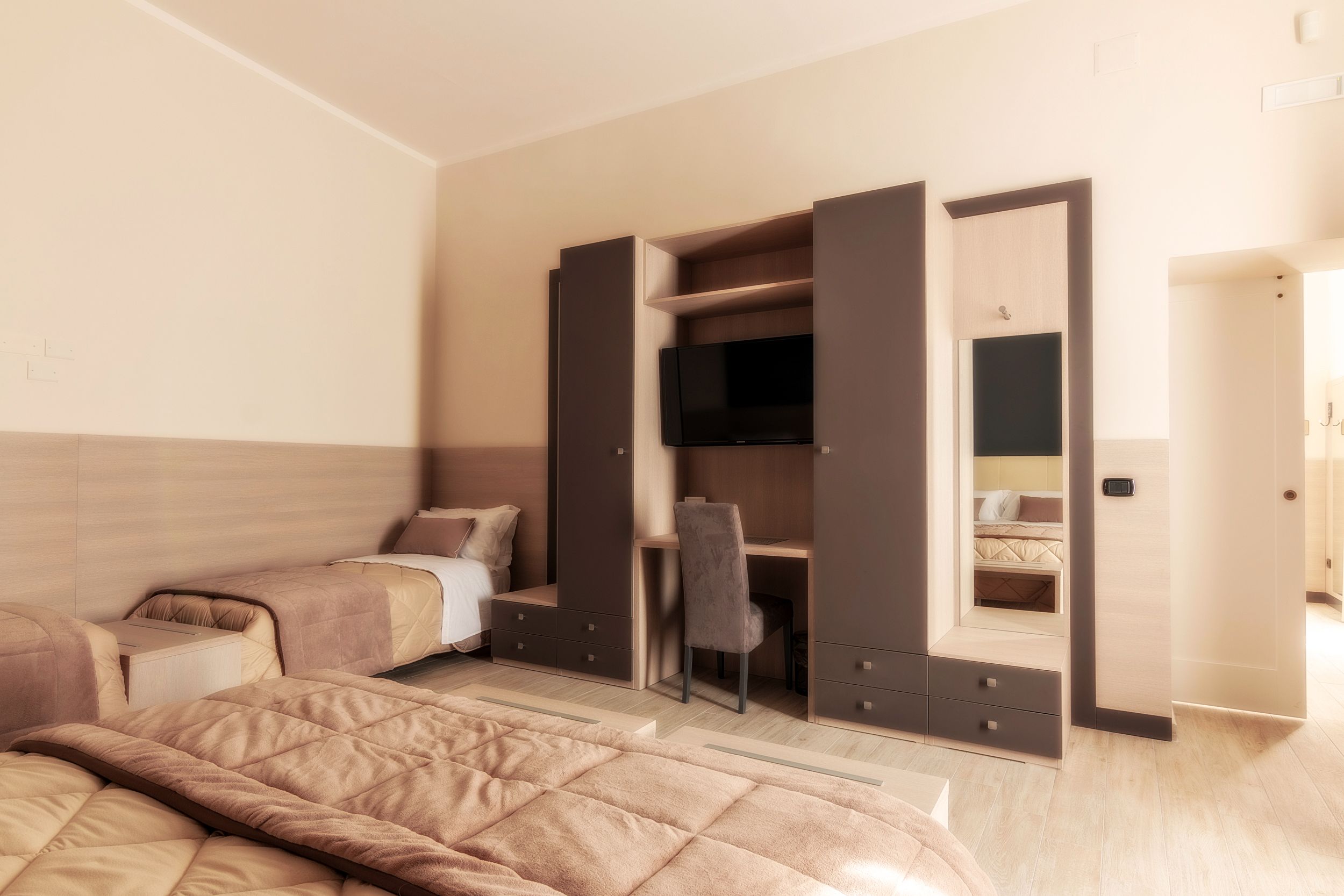 L'allestimento della Suite può prevedere un letto matrimoniale a cui si possono aggiungere uno, due o tre letti singoli oppure, per gruppi di amici, è possibile allestire tutti i letti singoli.